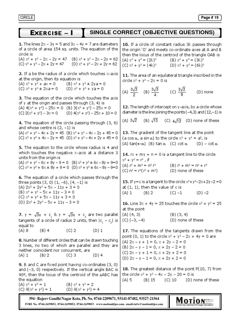 (A) 4(x2 + y2) – 25x = 0 (B) 3(x2 + y2) – 25x = 0 12. The length of intercept on y-axis, by a circle whose