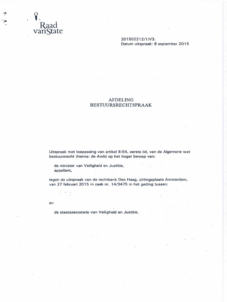 Tegen deze uitspraak heeft de minister (thans: de staatssecretaris) hoger