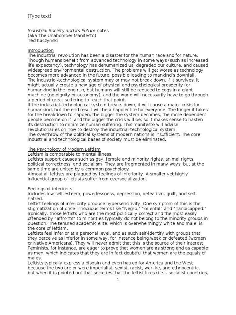 Industrial Society and Its Future Notes