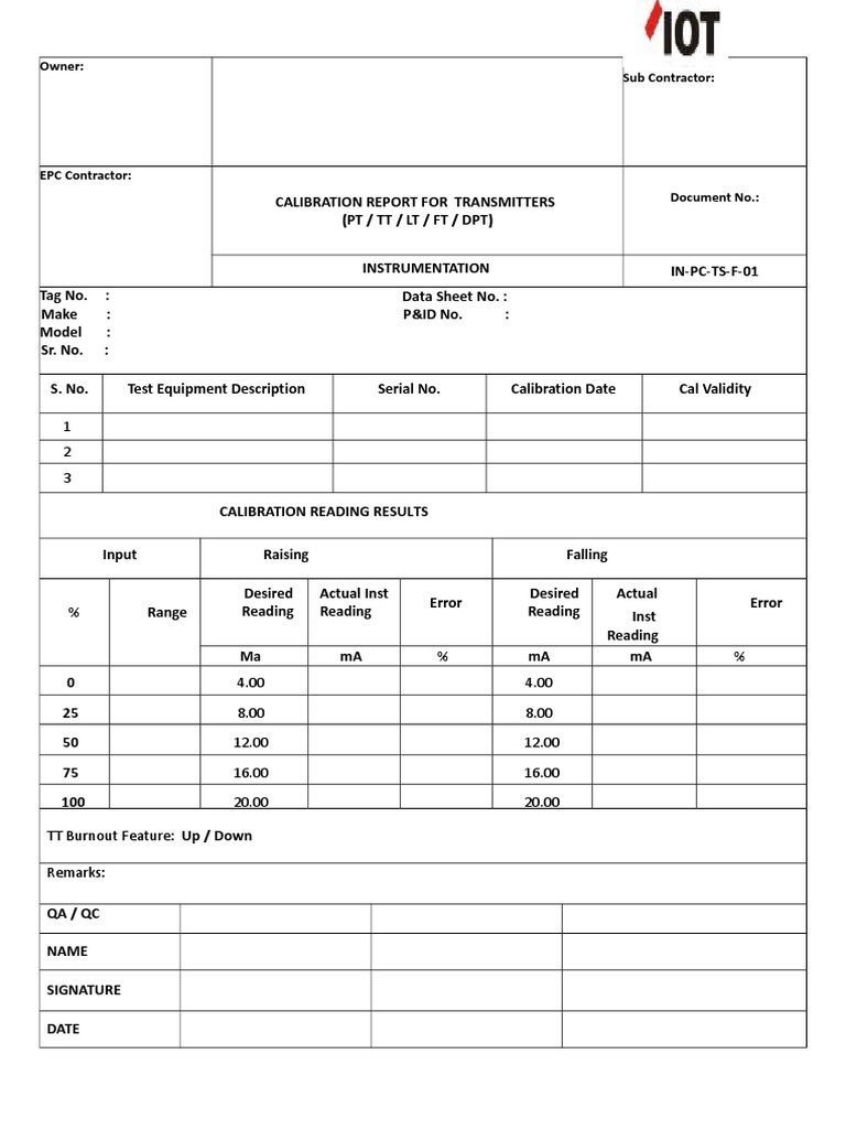 CALIBRATION REPORT FOR TRANSMITTERS Document No.:
