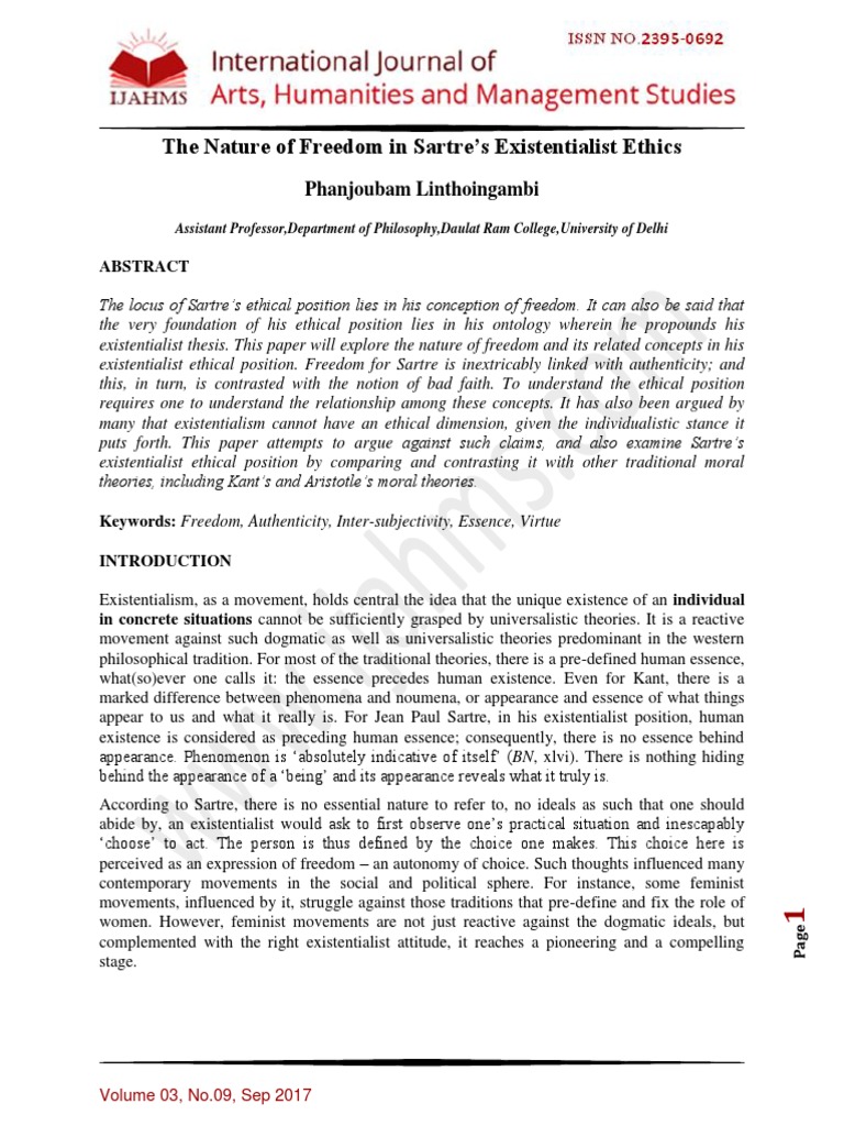 Consequently, this paper will set the limit on the discourse of „freedom‟ from Jean Paul Sartre‟s