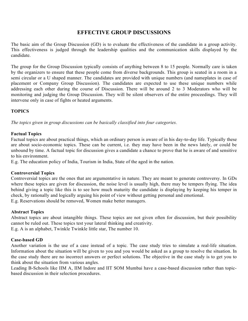 EFFECTIVE GROUP DISCUSSIONS