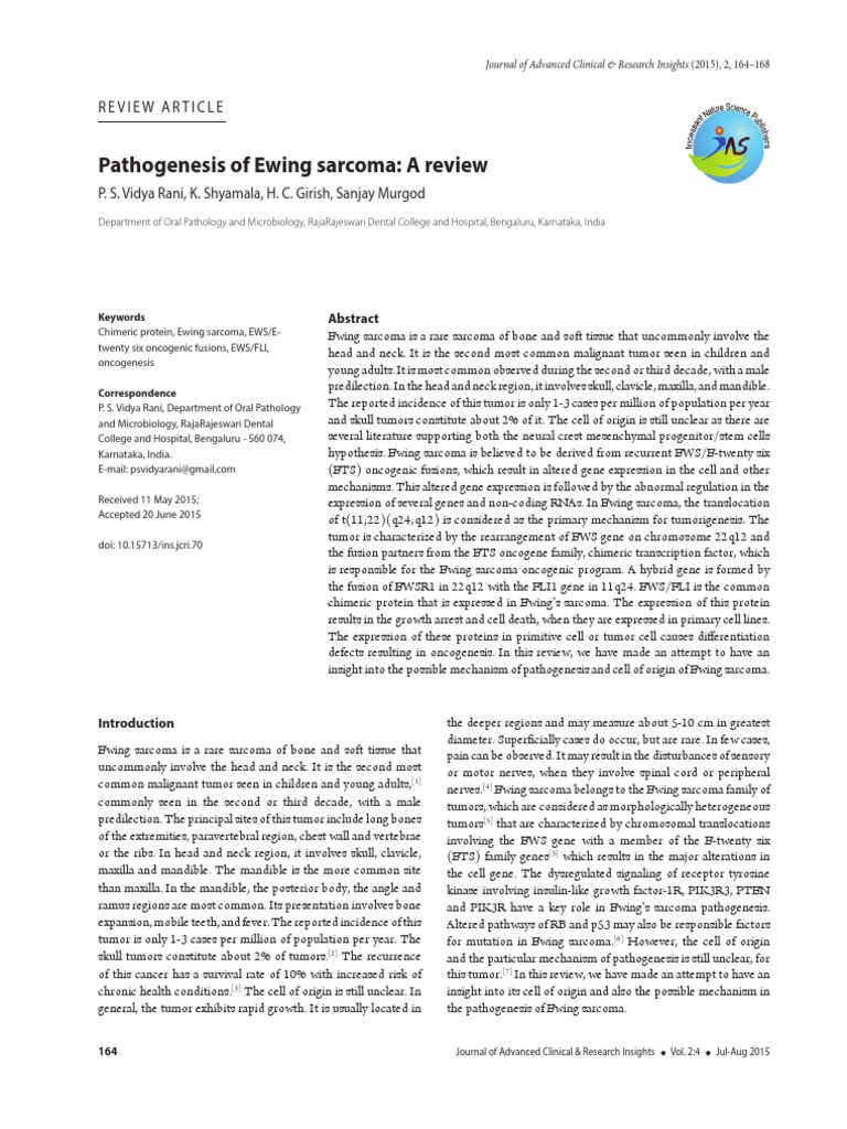 Murgod S. Pathogenesis of Ewing sarcoma: A review. J Adv