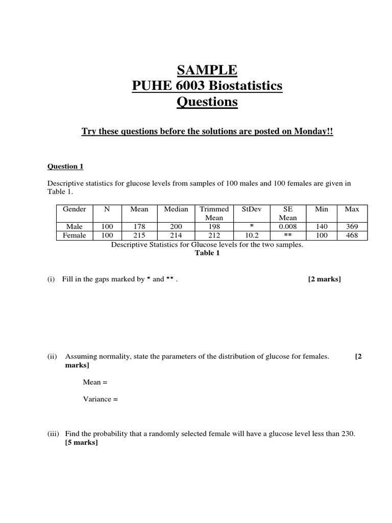 (ii) Assuming normality, state the parameters of the distribution of glucose for females. [2