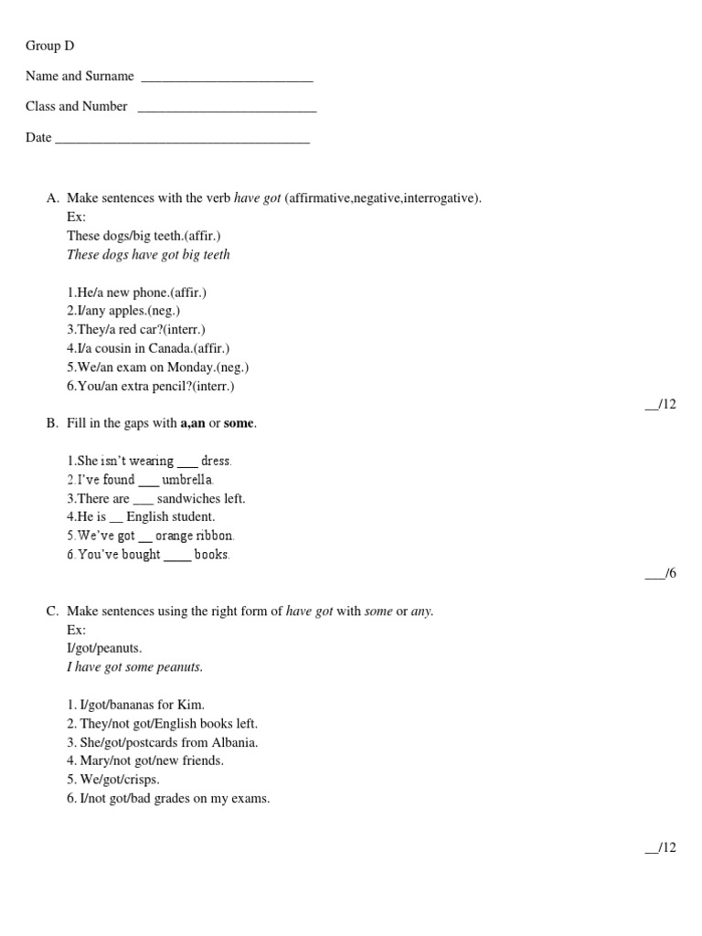 A. Make sentences with the verb have got (affirmative,negative,interrogative).