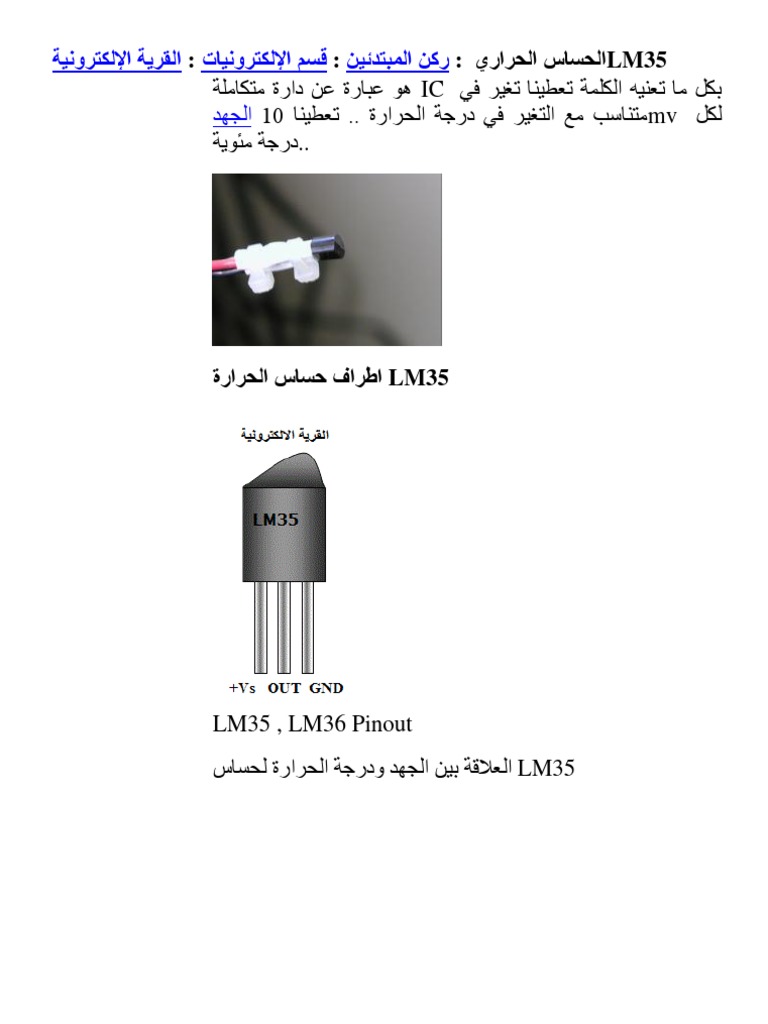 LM35الحساس الحراري :ركن المبتدئين :قسم اإللكترونيات :القرية اإللكترونية