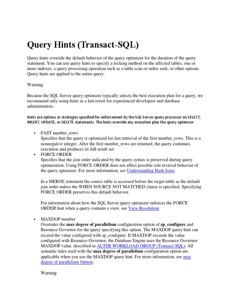 Query hints override the default behavior of the query optimizer for the duration of the query