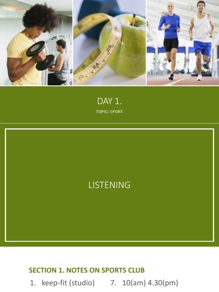 1. keep-fit (studio) 7. 10(am) 4.30(pm)