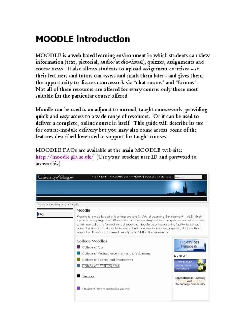MOODLE page. Colleges or Schools running MOODLE courses will have