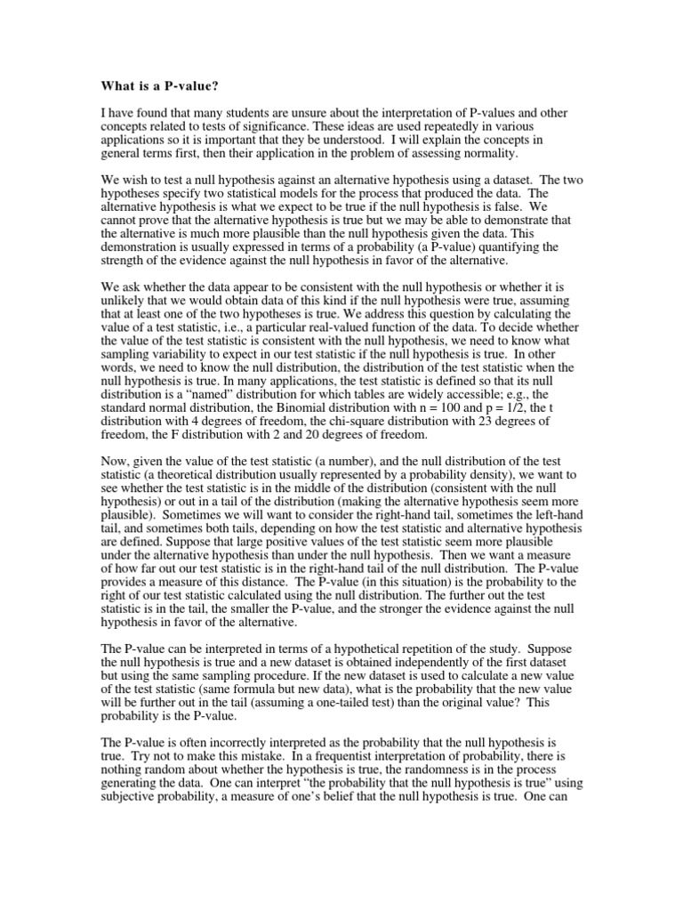 hypothesis is true. More often, it seems better to report the P-value as a measure of