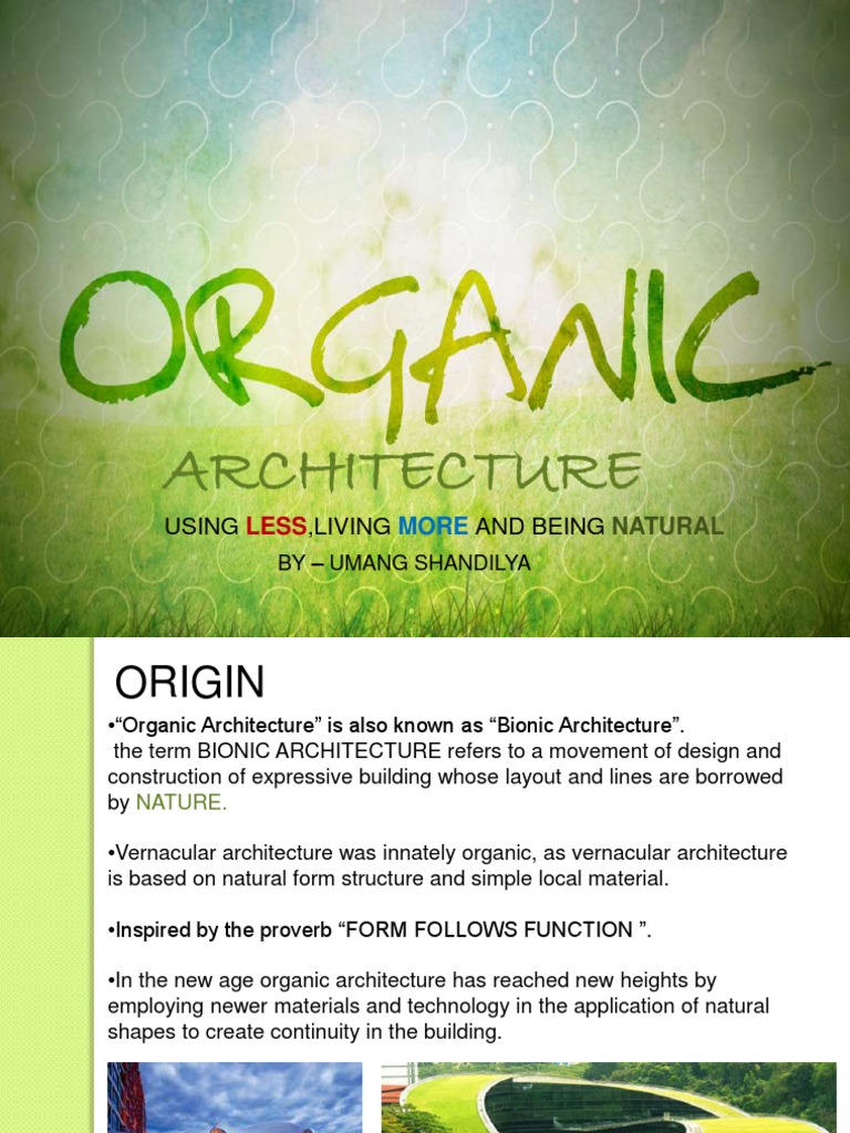 •“Organic Architecture” is also known as “Bionic Architecture”.