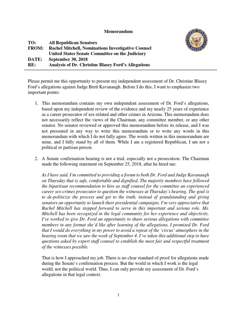 Ford’s allegations against Judge Brett Kavanaugh. Before I do this, I want to emphasize two