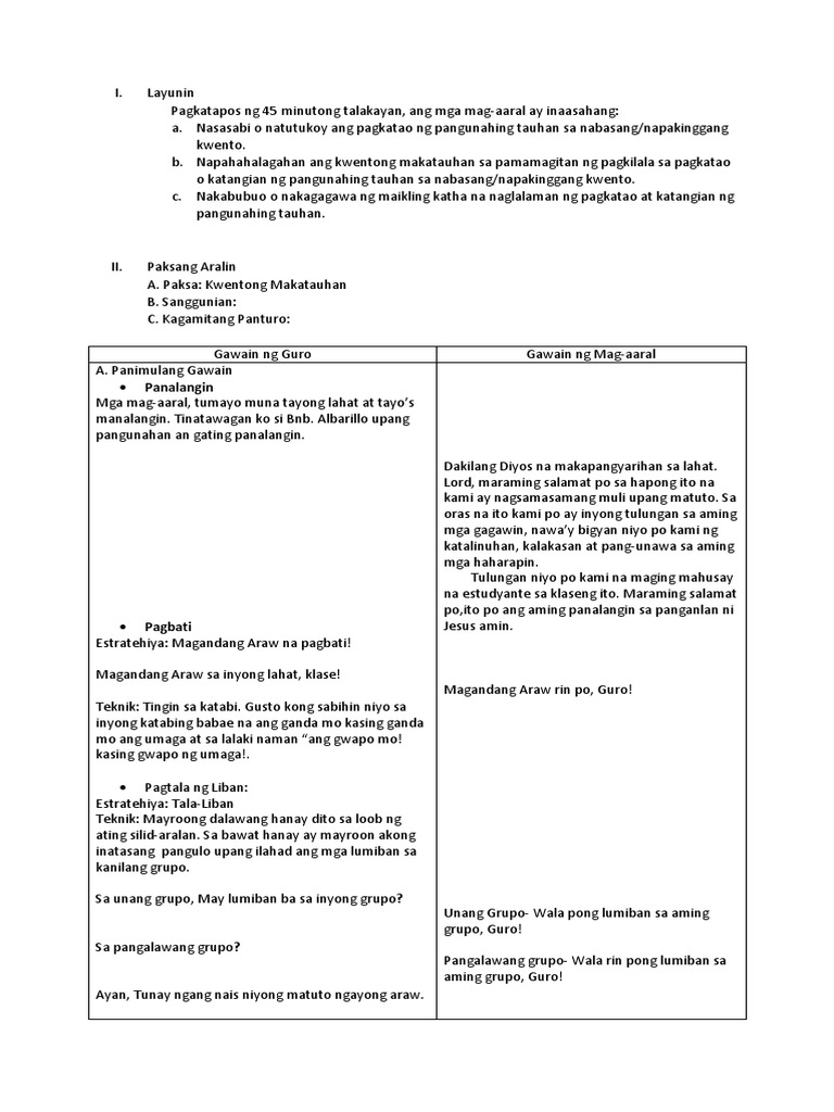 Pagkatapos ng 45 minutong talakayan, ang mga mag-aaral ay inaasahang: