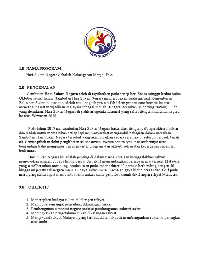 Falsafah Pendidikan Kebangsaan. Akhir sekali Sambutan Hari Sukan Negara ini penting untuk