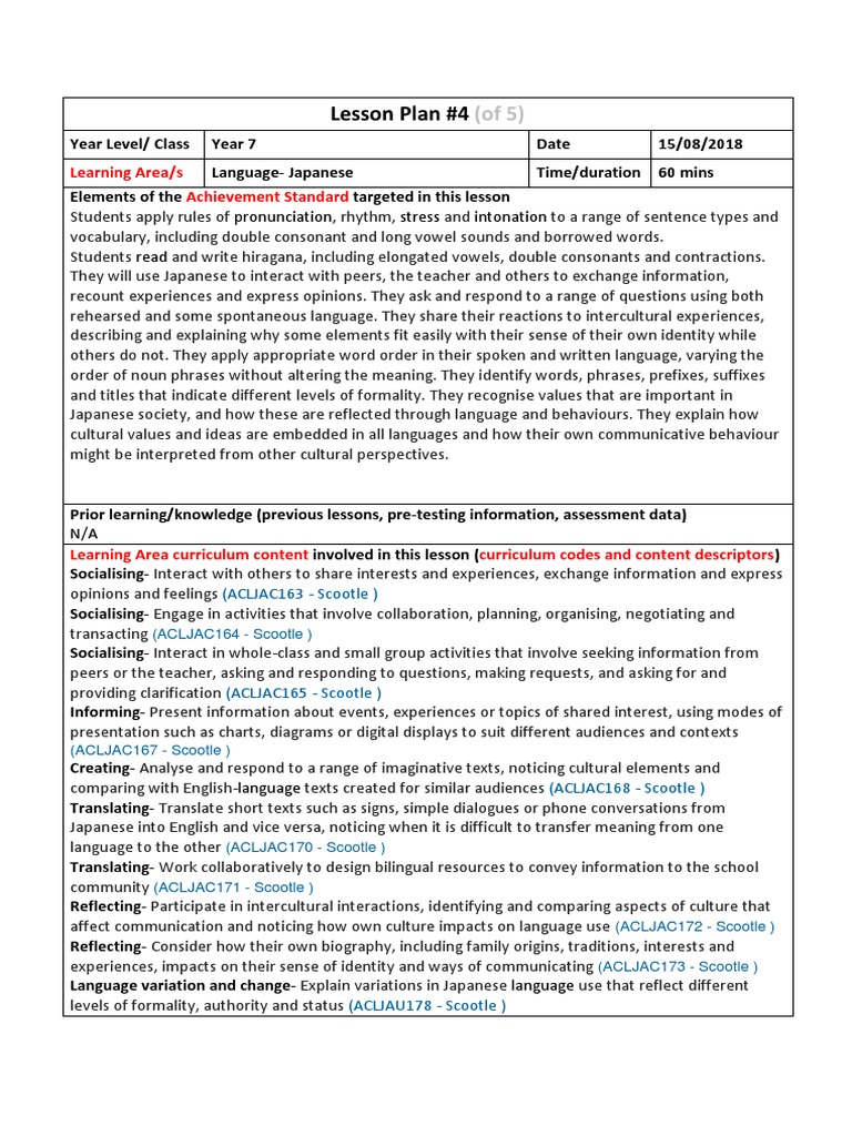 Learning Area/s Language- Japanese Time/duration 60 mins