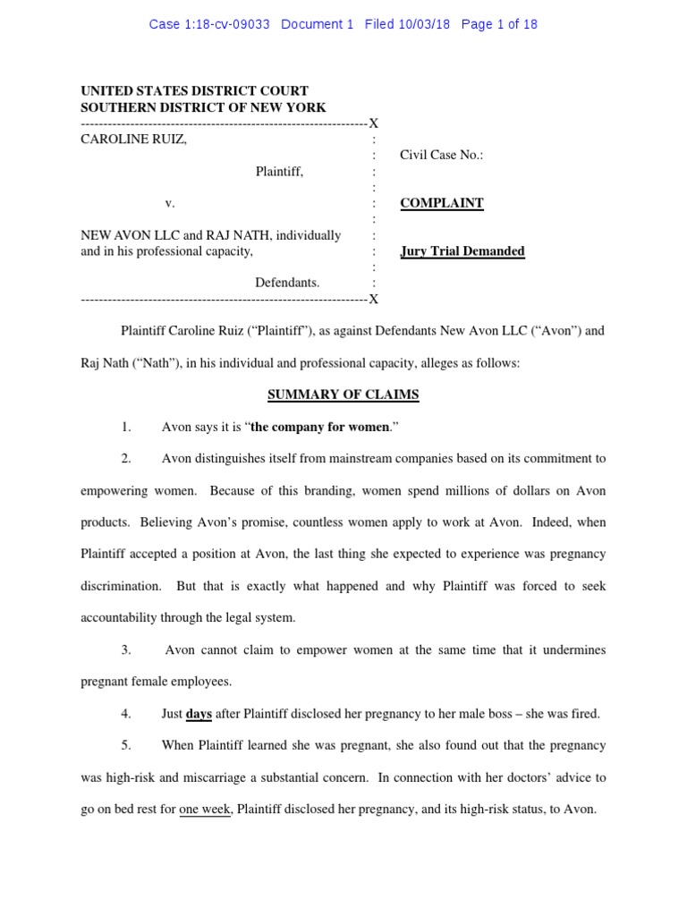 Avon pregnancy discrimination complaint