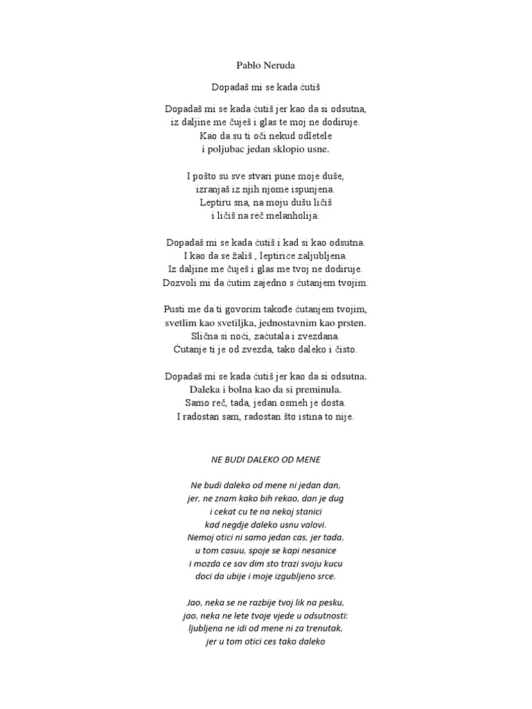 iz daljine me čuješ i glas te moj ne dodiruje.