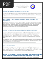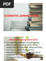 The document appears to be an enrollment form for an Alternative Learning System from the Department of Education of the Republic of the Philippines. It collects basic information such as name, address, and previous education level to enroll students in alternative education programs.