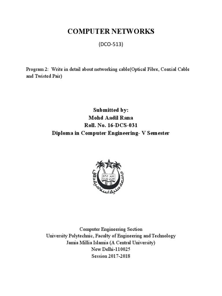 Program 2: Write in detail about networking cable(Optical Fibre, Coaxial Cable