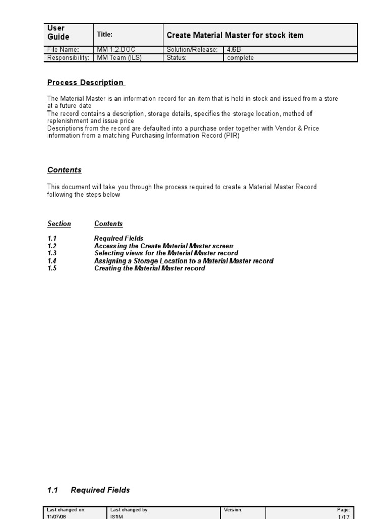 training doc sap material master