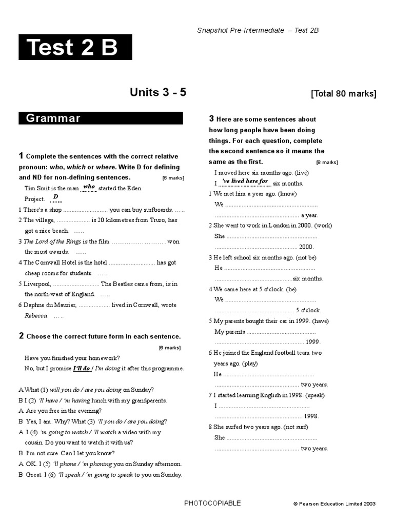 PHOTOCOPIABLE © Pearson Education Limited 2003