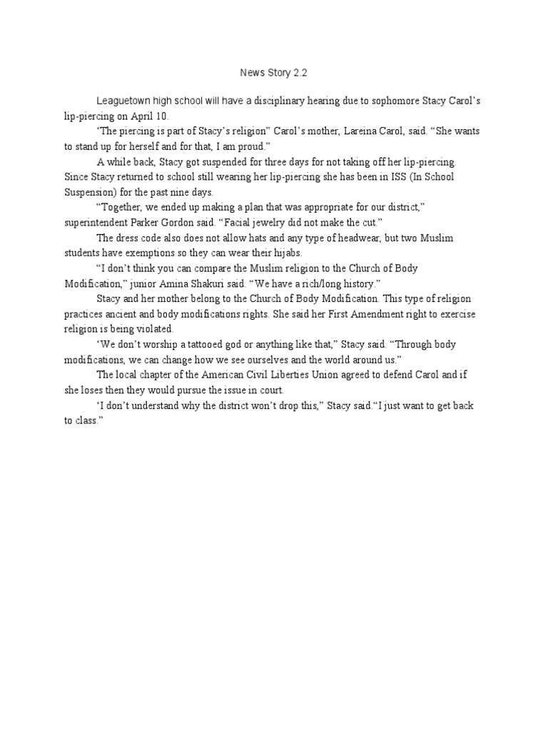 A while back, Stacy got suspended for three days for not taking off her lip-piercing.