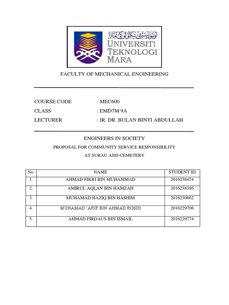 For student who are in semester seven, MEC600 (Engineering in Society Course) is