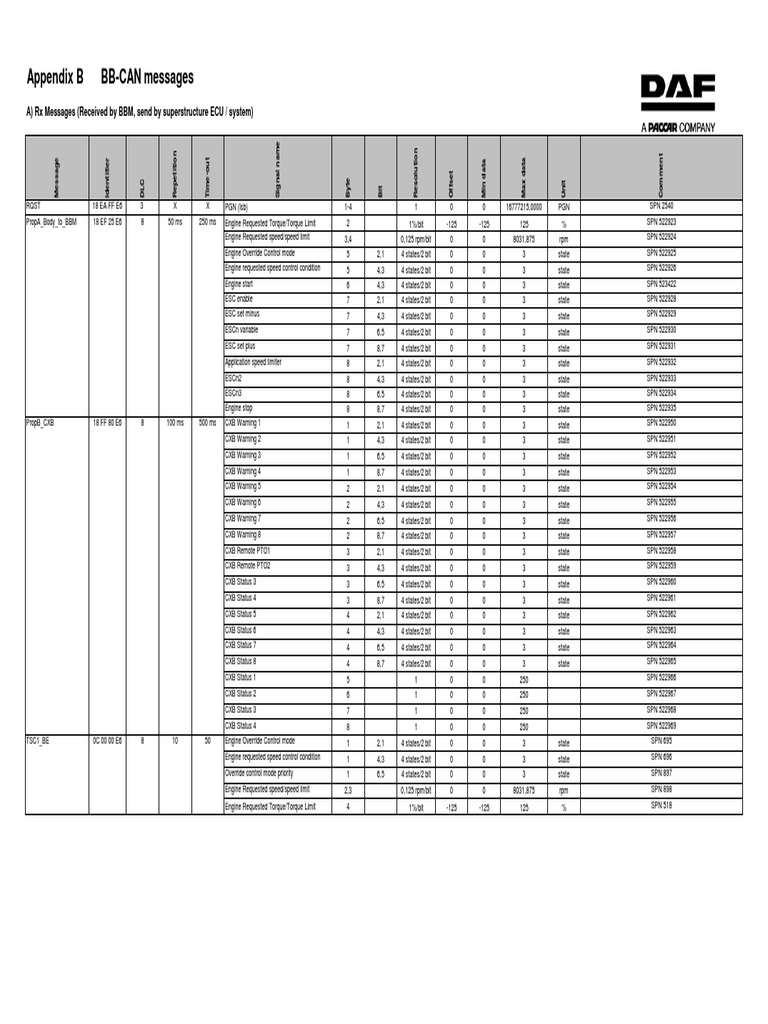 PropA_Body_to_BBM 18 EF 25 E6 8 50 ms 250 ms Engine Requested Torque/Torque Limit 2 1%/bit -125 -125 125 % SPN 522923