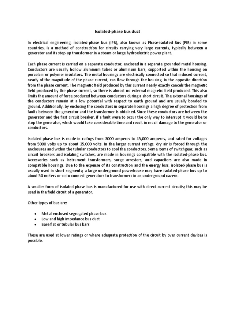 usually used in short segments; a large underground powerhouse may have isolated-phase bus up to