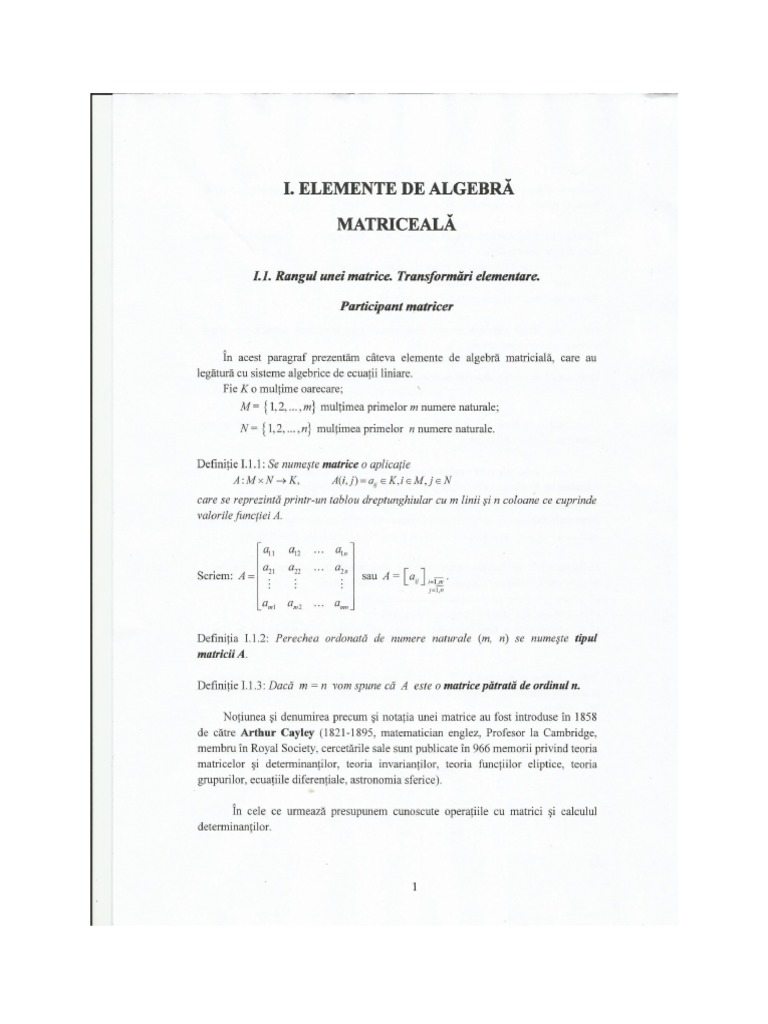 fn cele ce urmeaza presupunem cunoscute operasile cu matrici si ealeulul