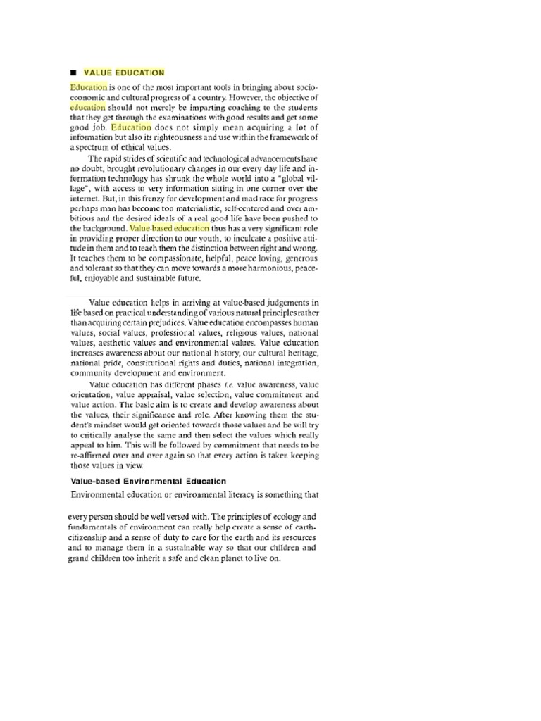 morality. Developing a strong system of general moral values is the basis on which environmentai