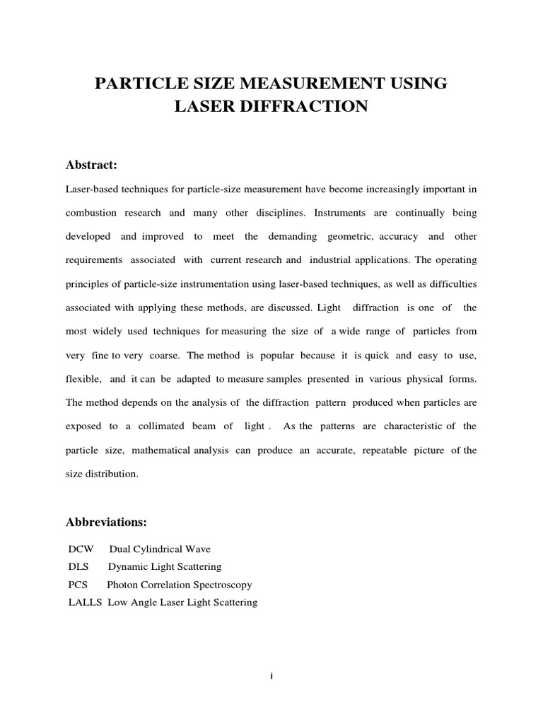 Laser-based techniques for particle-size measurement have become increasingly important in