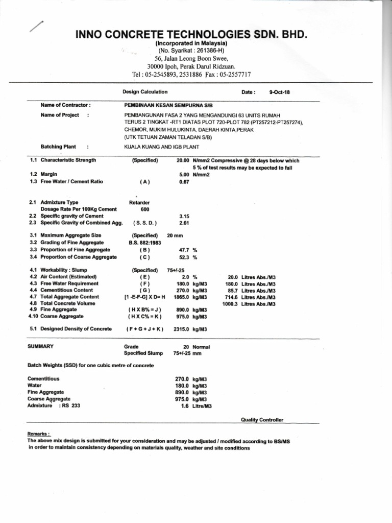 The above mix design is submitled foryour consideration and may be adjusted / modified according to BSIMS