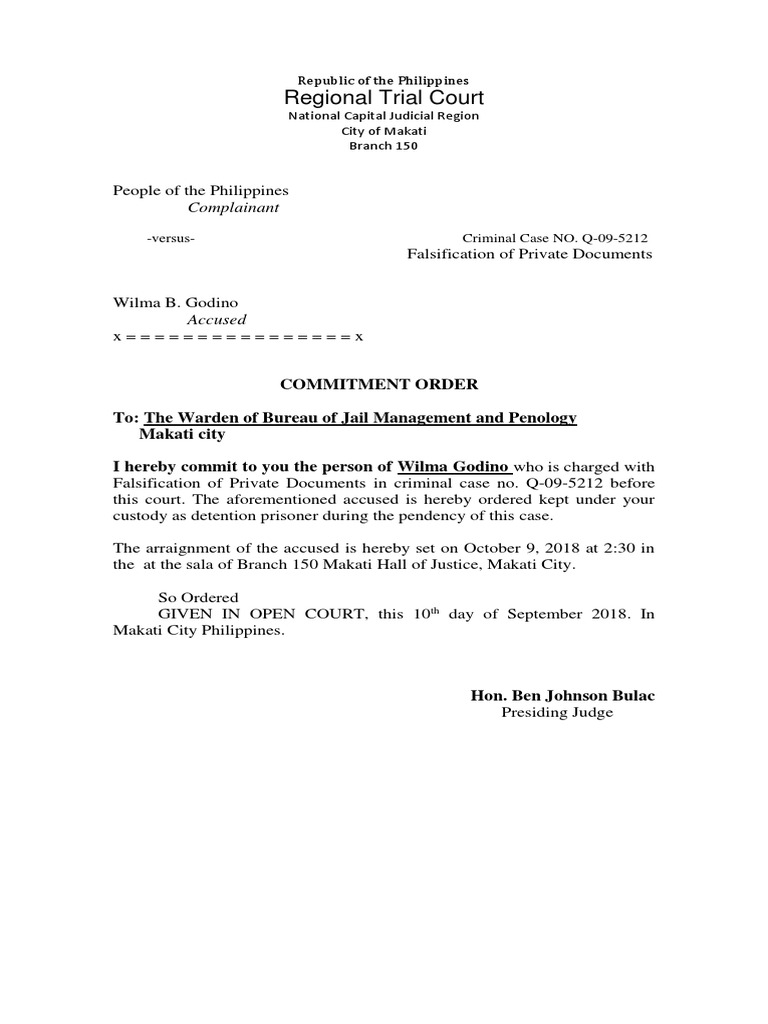 the at the sala of Branch 150 Makati Hall of Justice, Makati City.