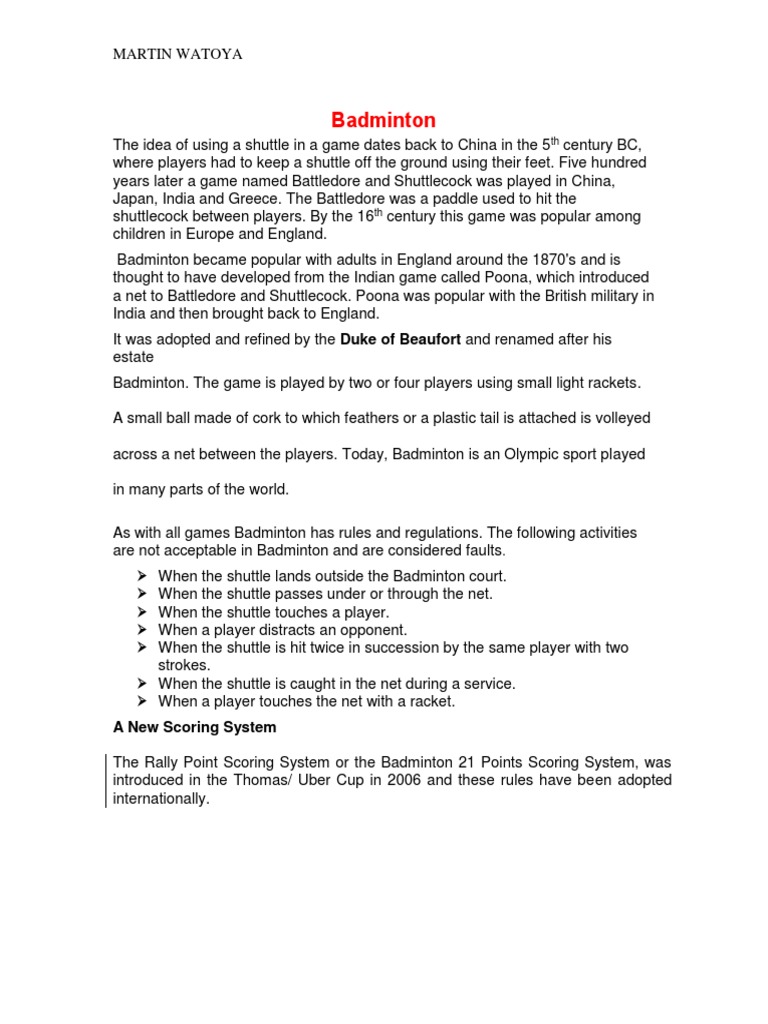 As with all games Badminton has rules and regulations. The following activities