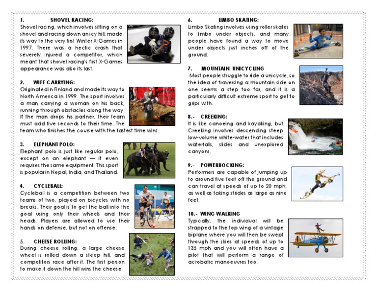 North America in 1999. The sport involves particularly difficult extreme sport to get to