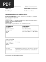 lesson and lesson content, will the student(s) know or learn, and (2) how will they demonstrate