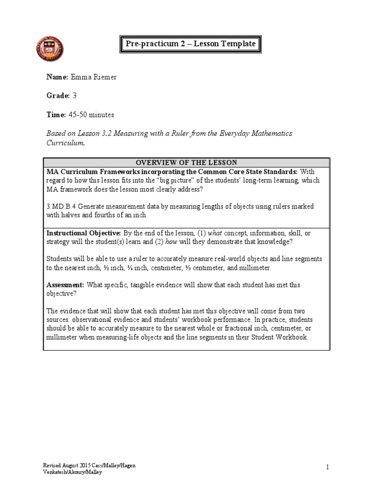 Based on Lesson 3.2 Measuring with a Ruler from the Everyday Mathematics