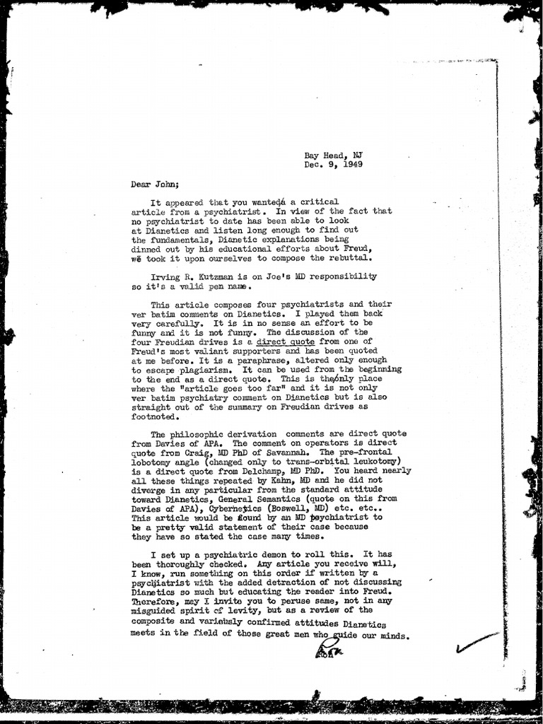 An essay written by L. Ron Hubbard made to look like it was by a non-existent psychiatrist providing a gentle rebuttal to Dianetics
