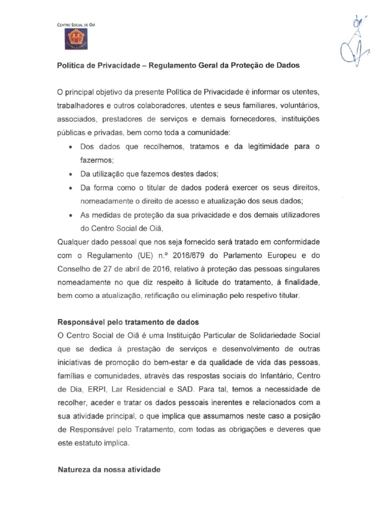 © Centro Social de Oia € uma Instituigéo Particular de Solidariedade Social