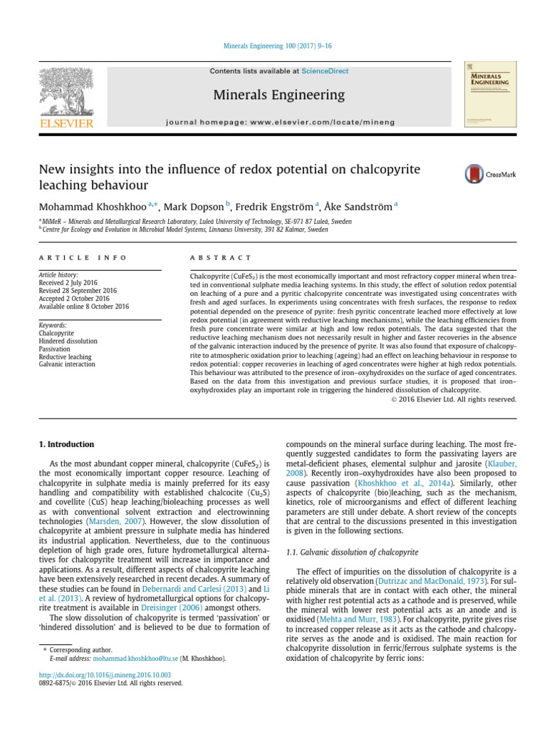 E-mail address: mohammad.khoshkhoo@ltu.se (M. Khoshkhoo). oxidation of chalcopyrite by ferric ions: