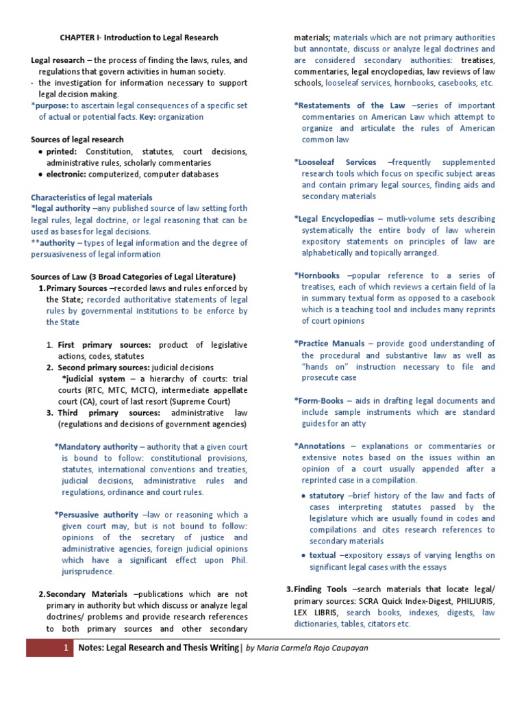 1 Notes: Legal Research and Thesis Writing| by Maria Carmela Rojo Caupayan