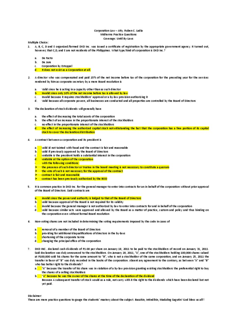 1. A, B, C, D and E organized/formed DKD Inc. was issued a certificate of registration by the appropriate government agency. It turned out,