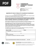 time, then please use this form to request authorisation, before arrangements have been made, from the Deputy Head explaining the reasons. Absences