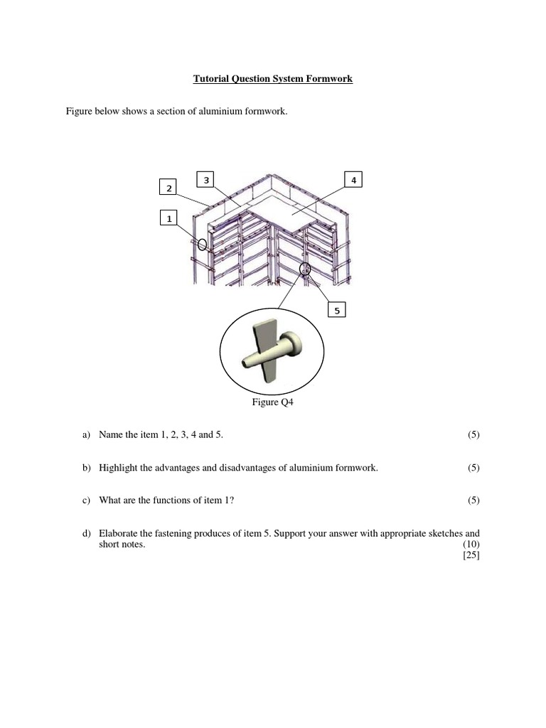 b) Highlight the advantages and disadvantages of aluminium formwork. (5)