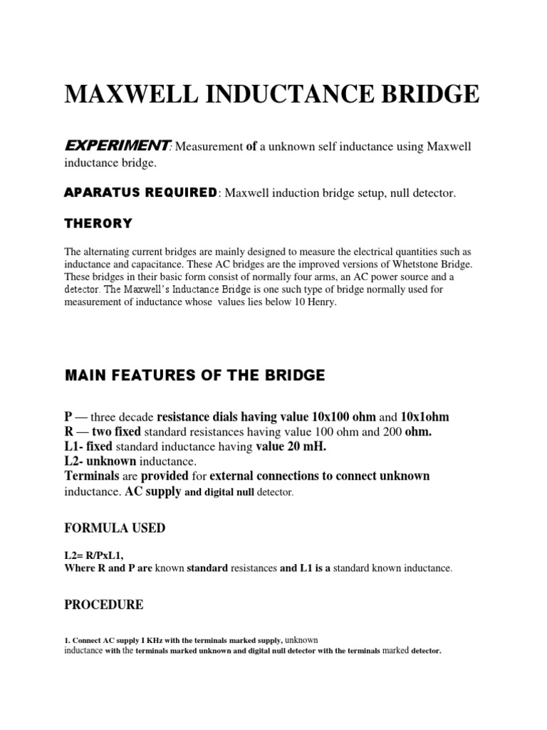 detector. The Maxwell’s Inductance Bridge is one such type of bridge normally used for