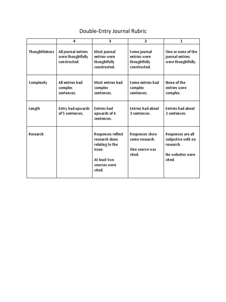 Double-Entry Journal Rubric