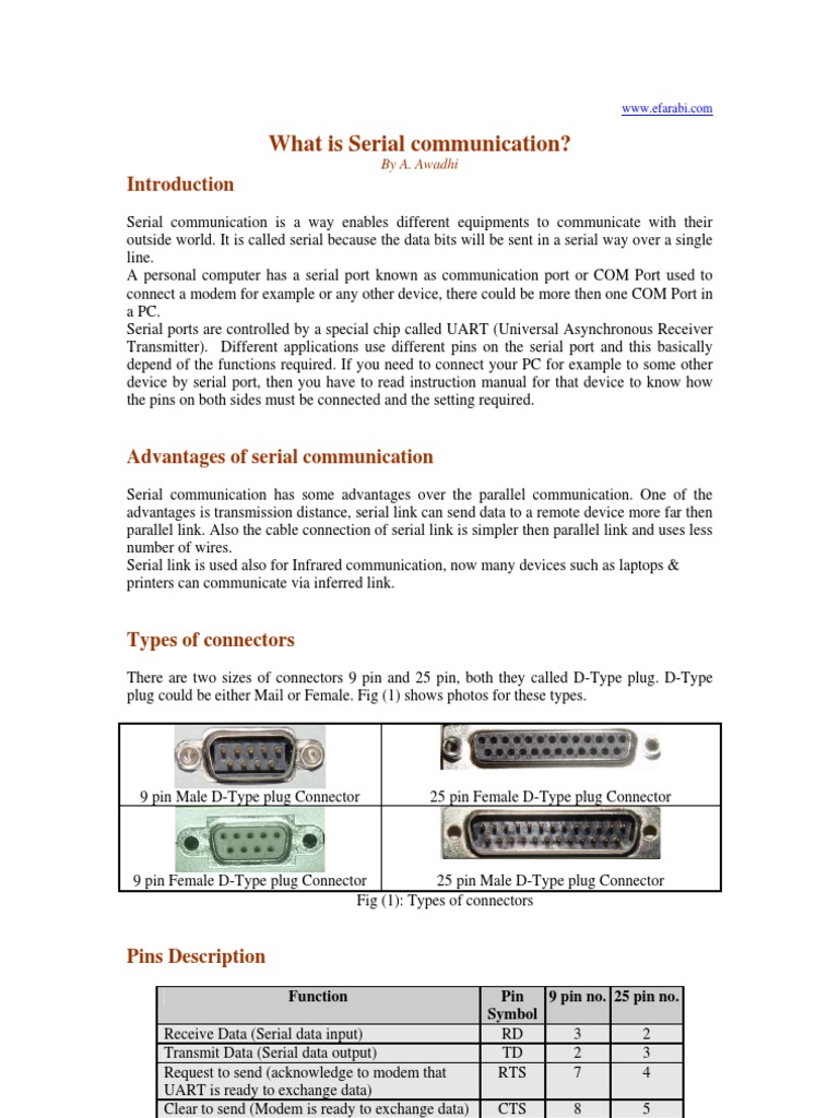 of data. Data is transmitted and received on pins 2 and 3 respectively (for both types 25 & 9