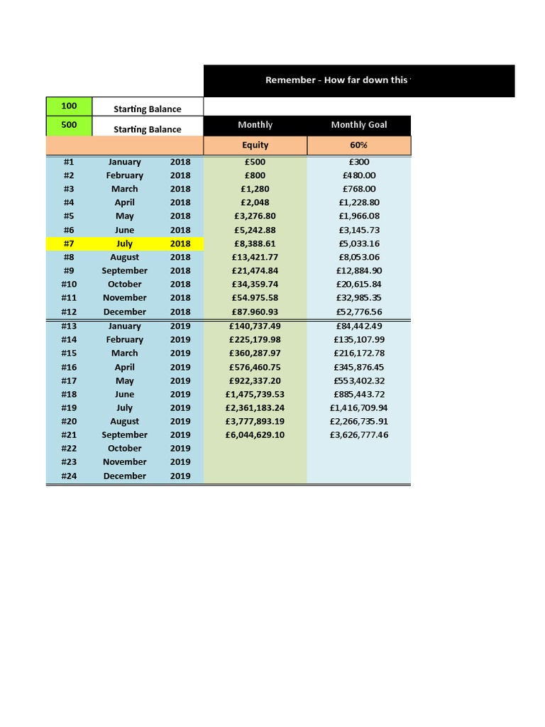 500 Starting Balance Monthly Monthly Goal
