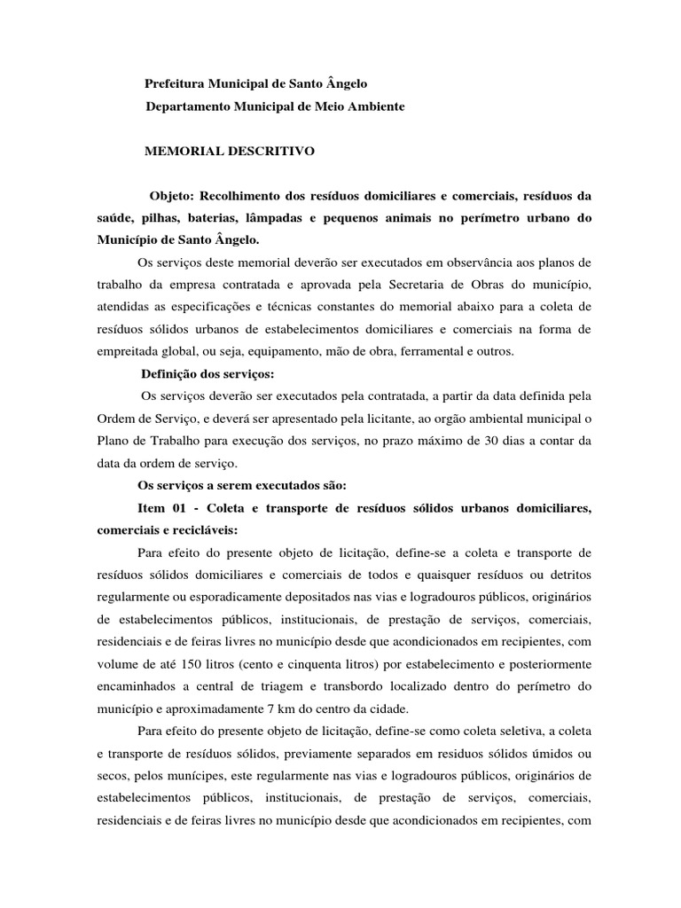 Objeto: Recolhimento dos resíduos domiciliares e comerciais, resíduos da